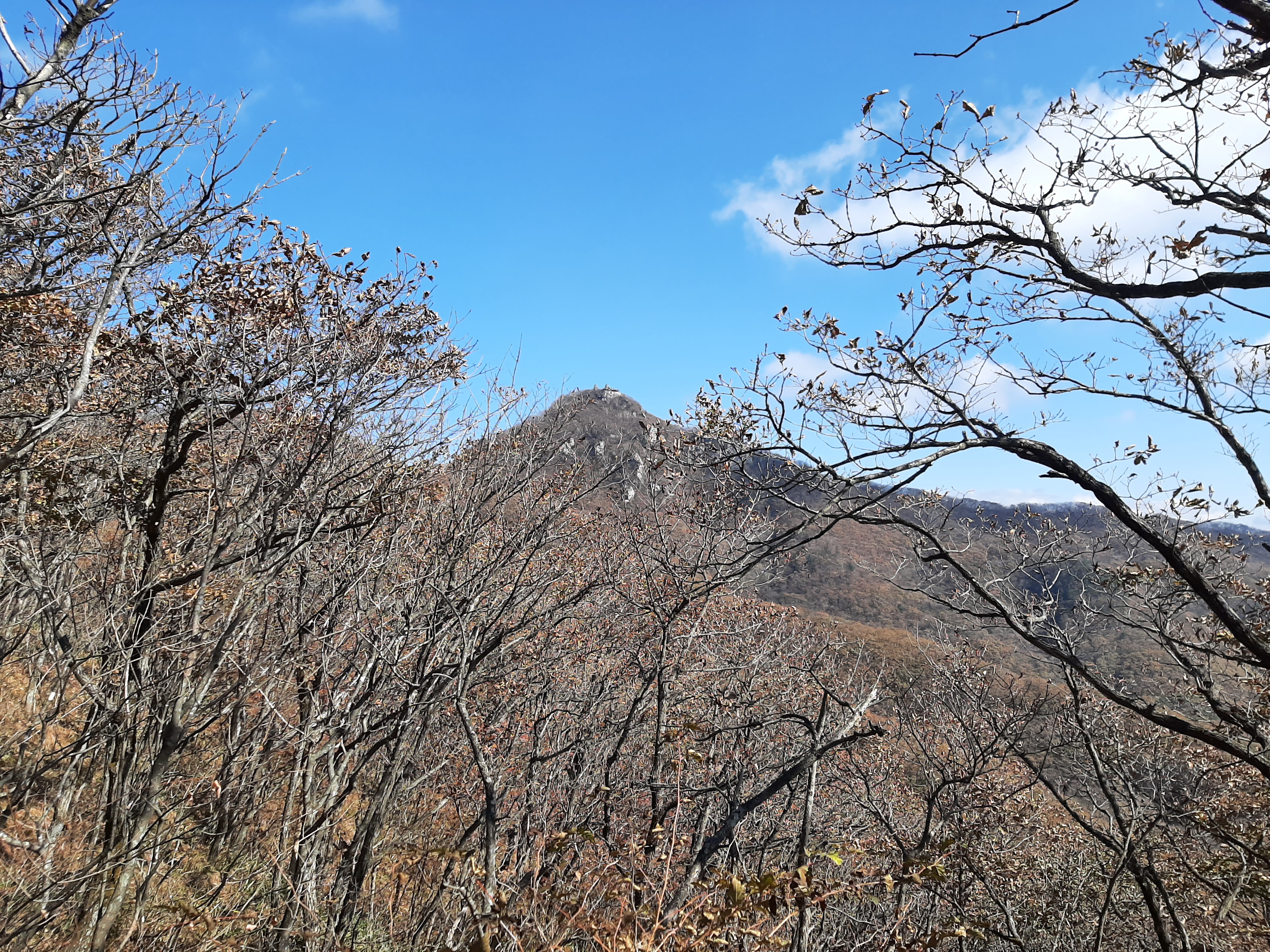 단풍이 얼마나 들었을까 기대를 하였었는데 갑자기 찾아온 추위로 높은 능선쪽의 단풍나무는 얼어서 말라버렸고 아래쪽으로는 아직이다.