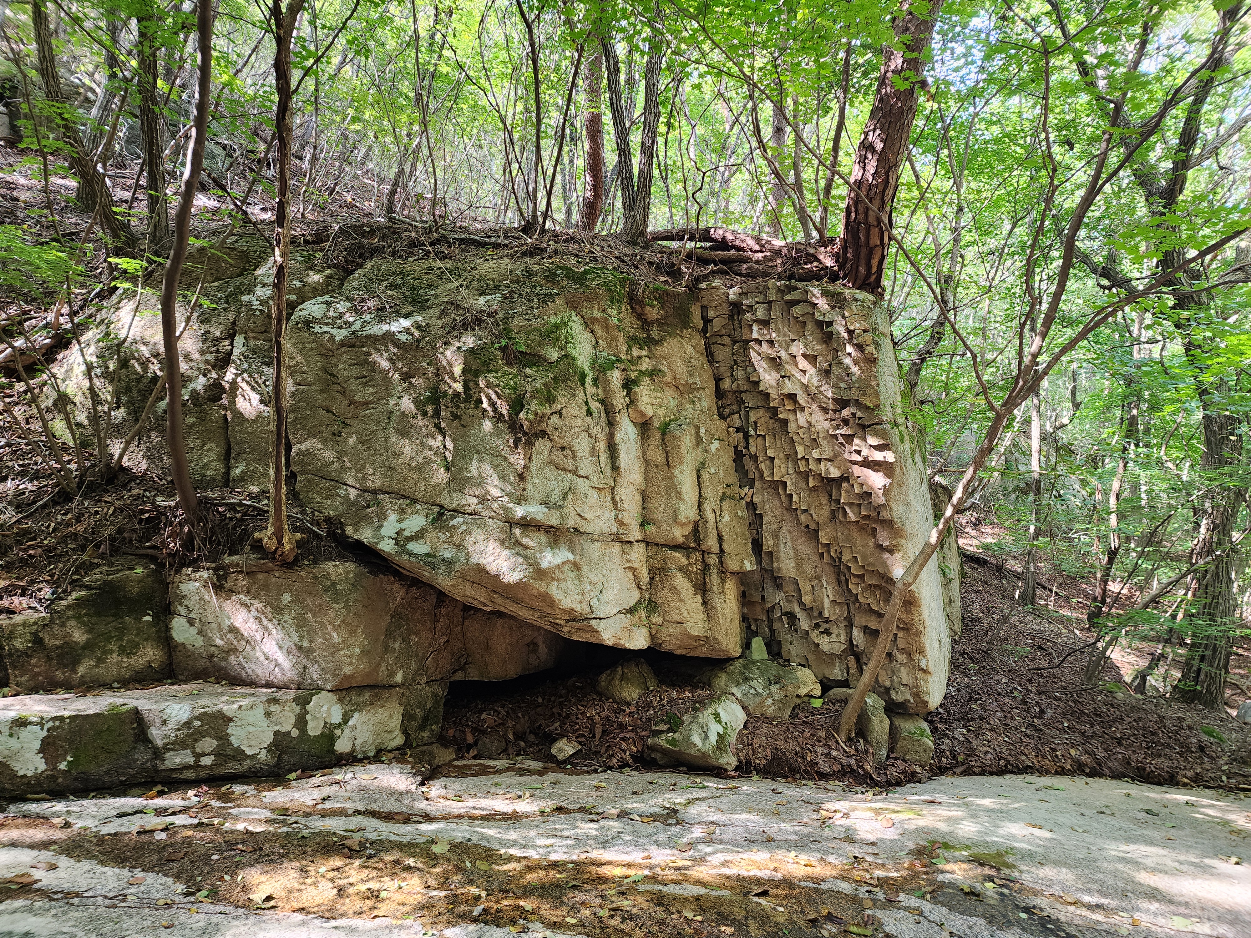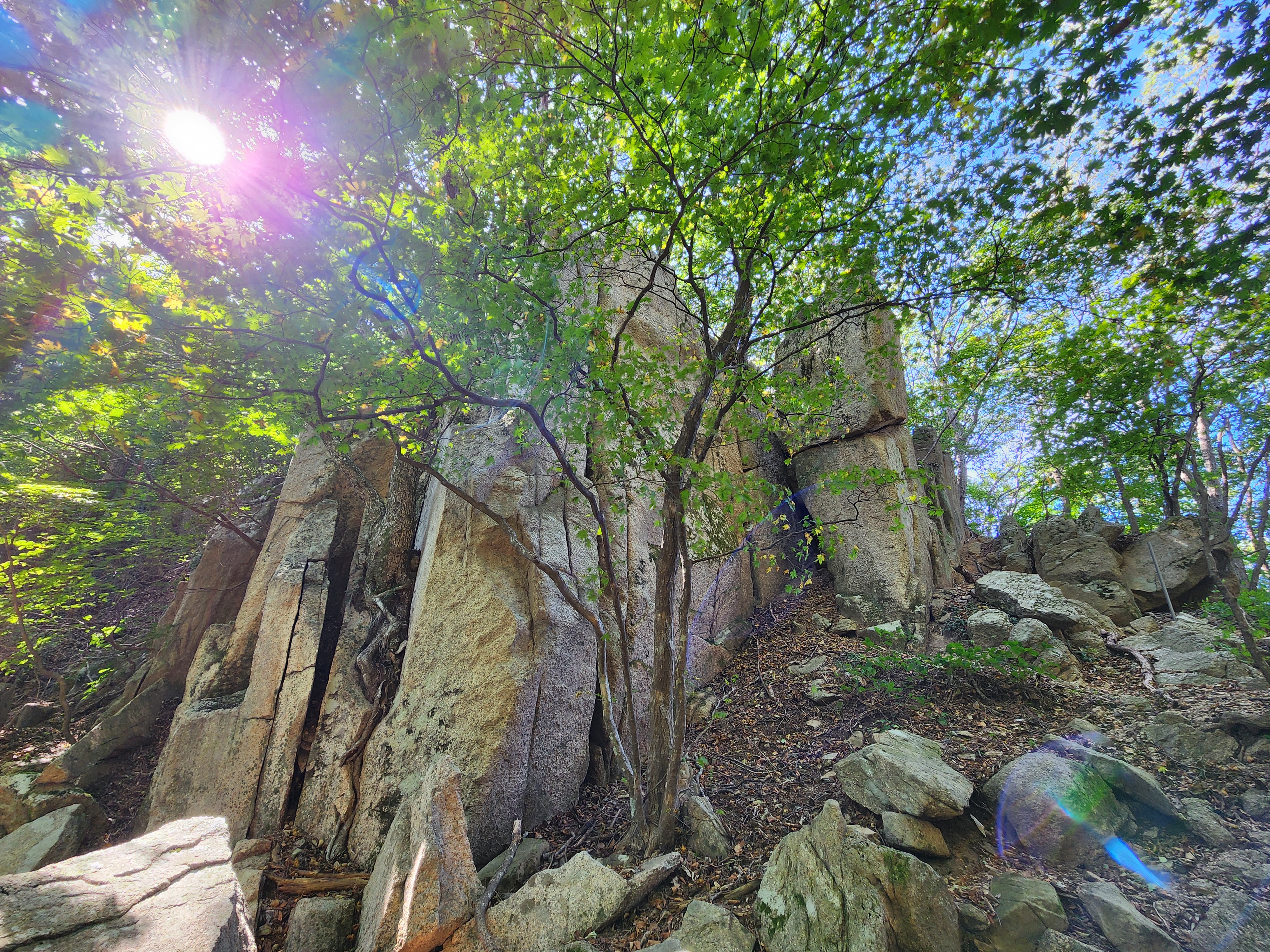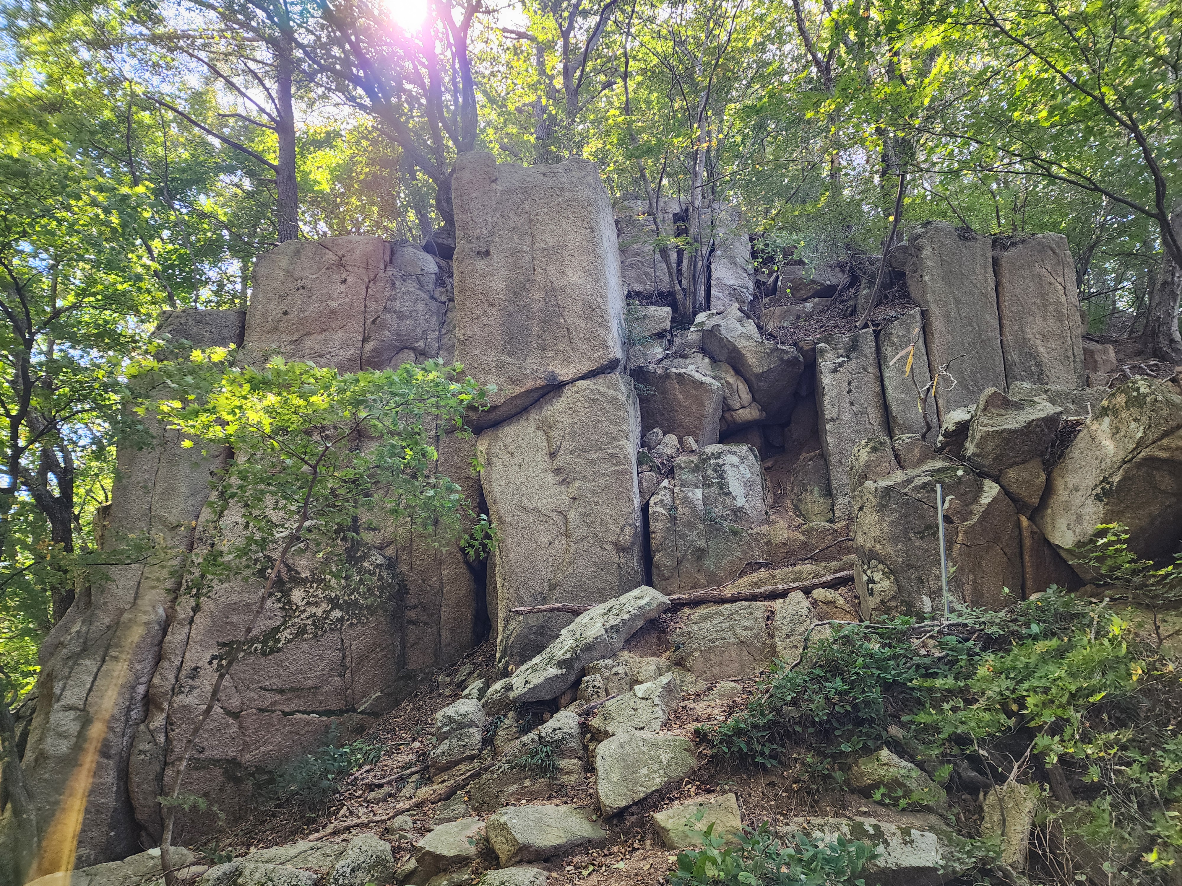 - 암봉(누운소나무) 13:40 - 샘골고개 13:50 - 삼거리(악휘봉90분) 14:35 - 입석마을 15:15